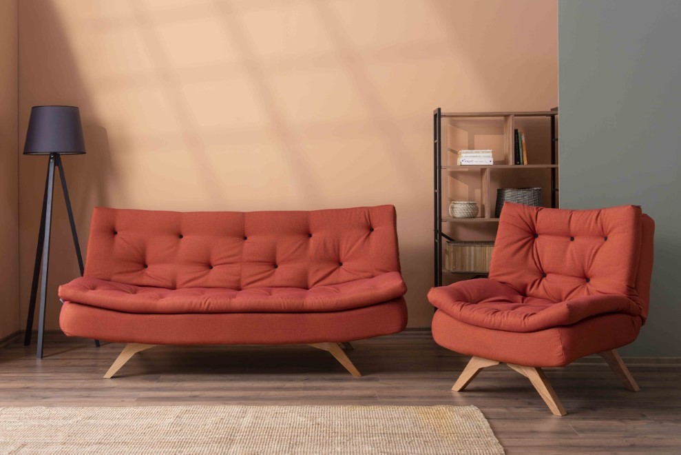 Modern tasarım: Zarif hatları ve şık terracotta rengiyle salon dekorasyonuna uyum sağlar.