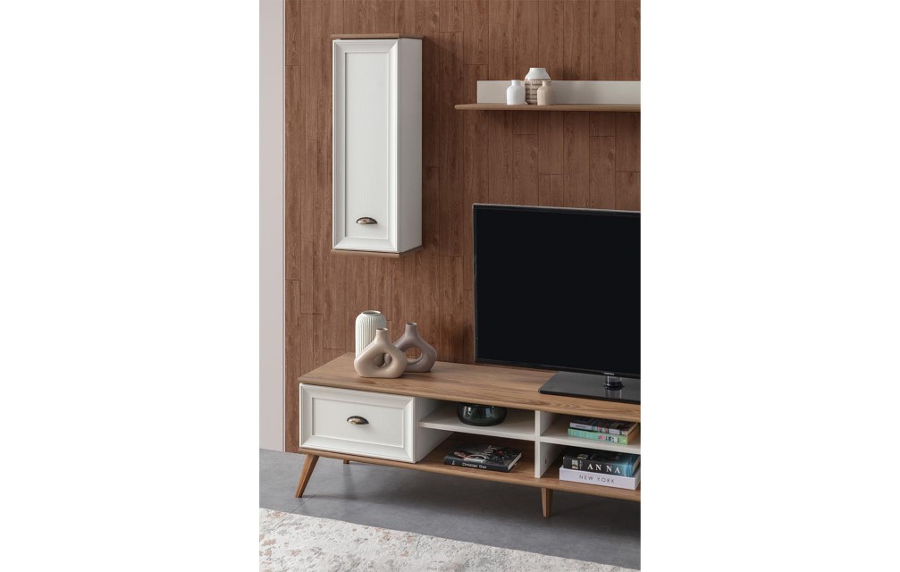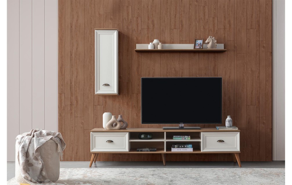 Modern beyaz ve ahsap kombinasyonu