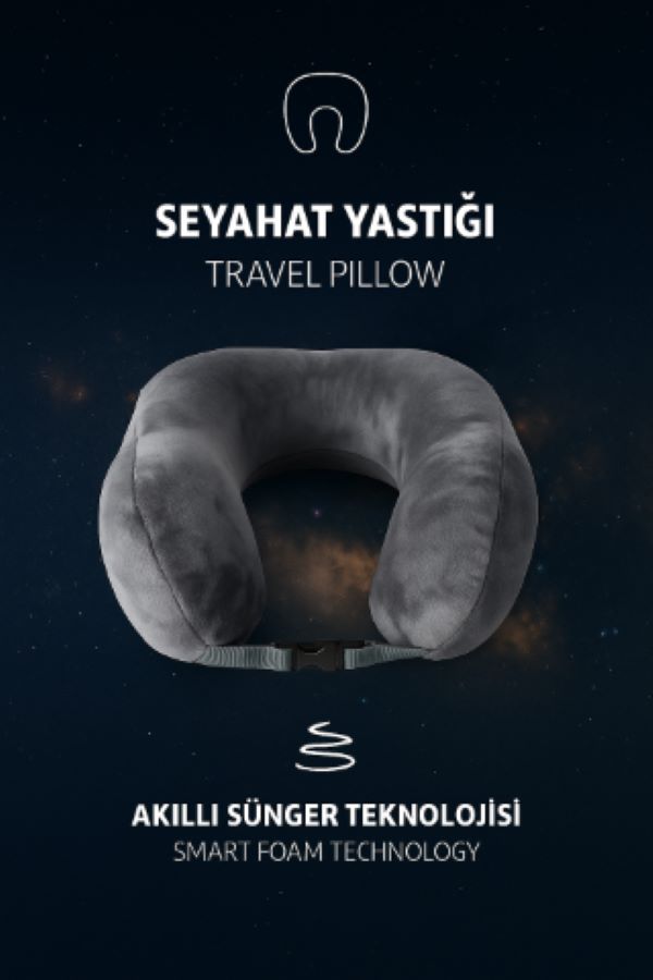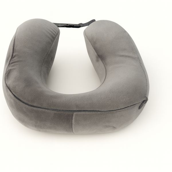 Armegeda Gri Memory Foam Boyun Destekli Seyahat Yastigi, yolculuk sirasinda boyun ve omurga destegi saglamak icin ergonomik olarak tasarlanmistir.